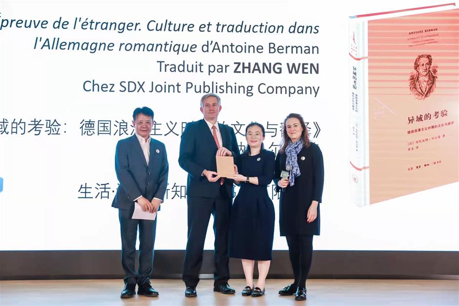 zhang wen's translation of antoine berman's "the experience of the foreign: culture and translation in romantic germany" won the essay award, which carries a cash award of 4,000 euros (us$4,528).