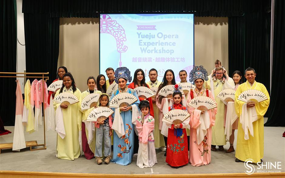 the yueju opera experience workshop, organized by city news service and supported by shanghai yueju opera company, provided foreigners insights into the art form's origin, vocal development and representative plays like "the butterfly lovers" and "a dream of red mansions."
