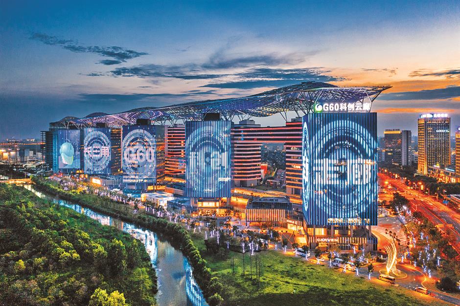 latest technologies and products are showcased at the g60 sci-tech corridor's exhibition hall.
