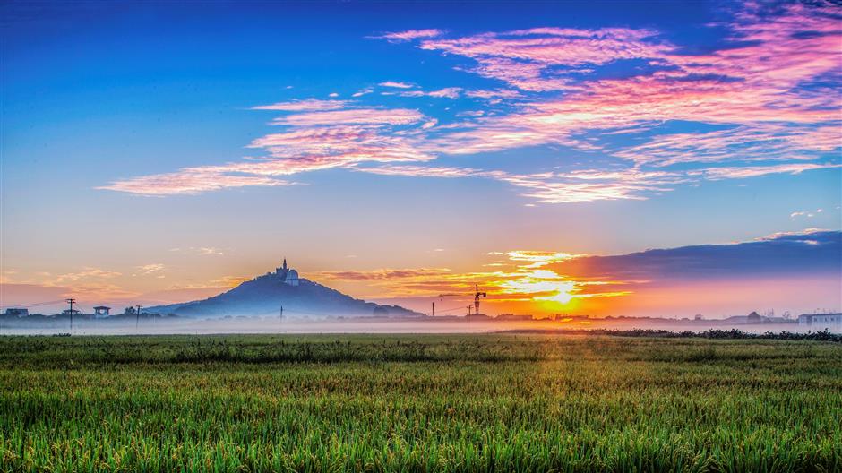 the stunning sunset against the backdrop of sheshan hill