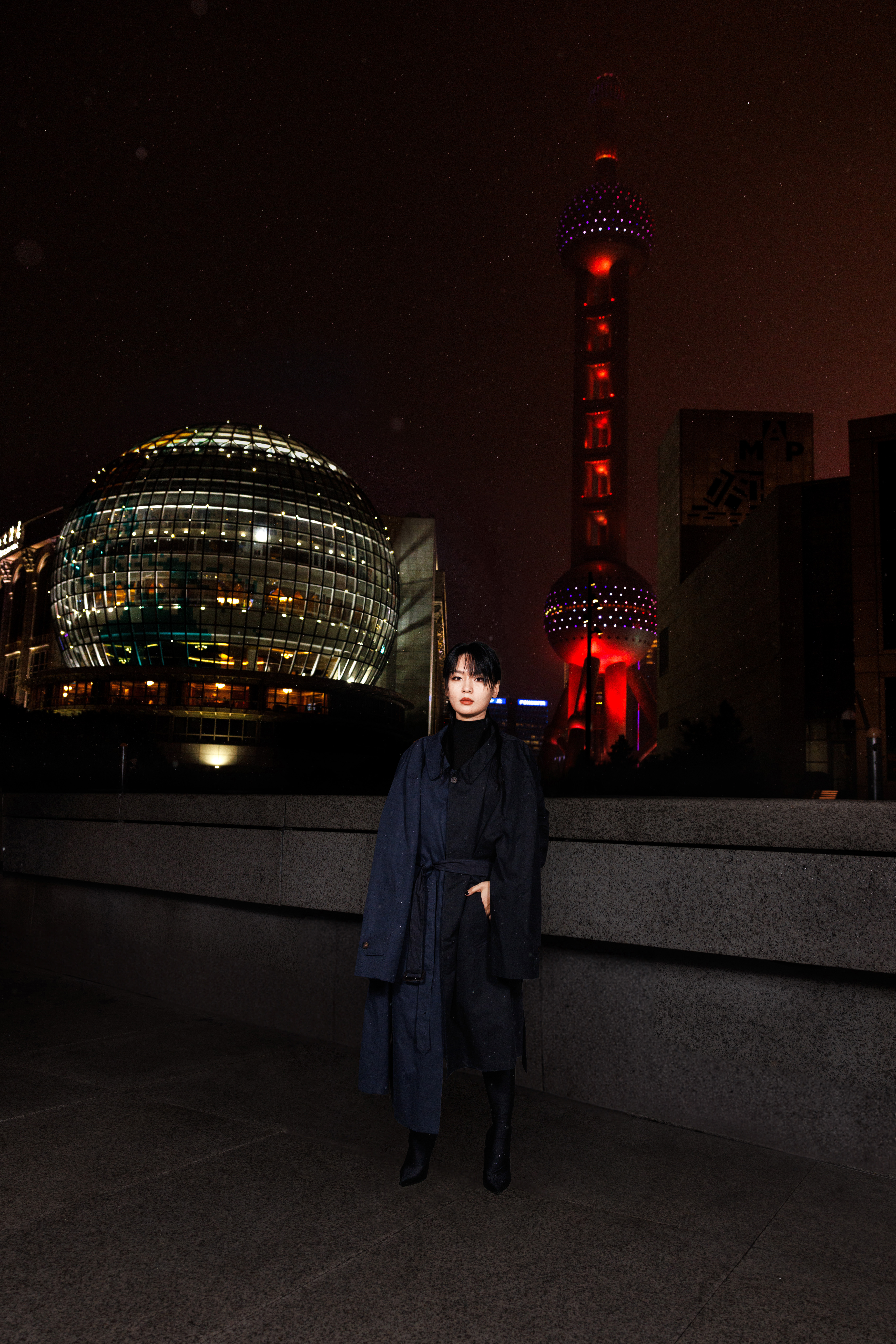 local shanghai model ding, decked out in super appropriate rain spitting spring attire.
