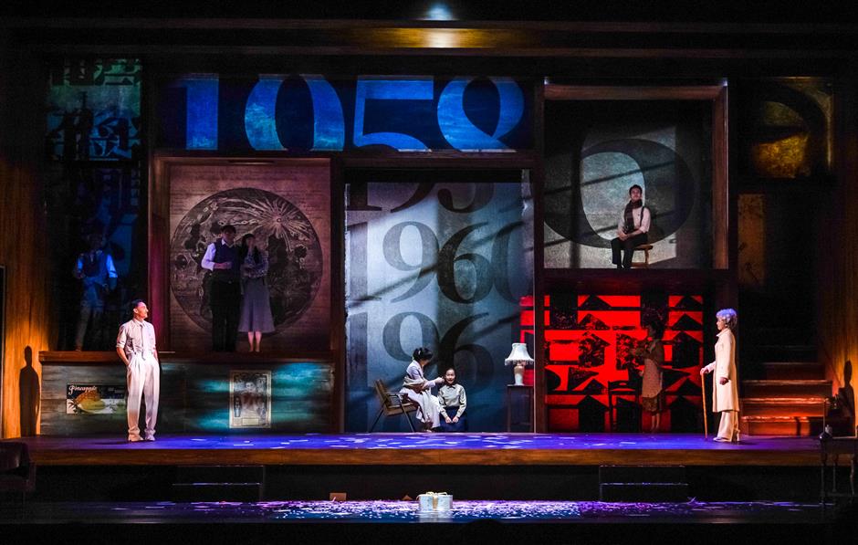 daniel ostling's set design for "river/cloud" features a multi-compartment style reminiscent of a "memory box," putting together a generation's chaotic existence.