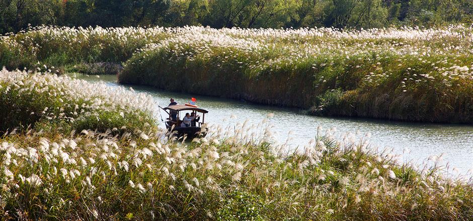 the round trip for electric boats begins at the wetland's north gate pier, continues through two distinct watercourses, and concludes at qiuxue nunnery. it's open from 9am to 4:30pm. people can enjoy the snowflake-like dilu flowers along the banks.