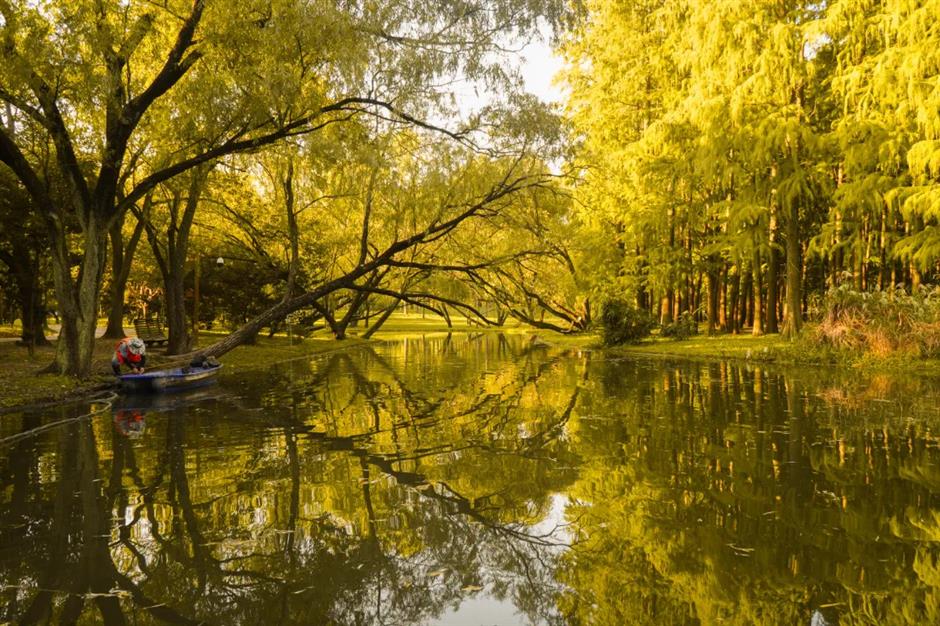 you can enjoy such views in shanghai botanical garden, songjiang's chenshan botanical garden, minhang cultural park, fengxian's gulf national forest park, and chongming's dongping national forest park.