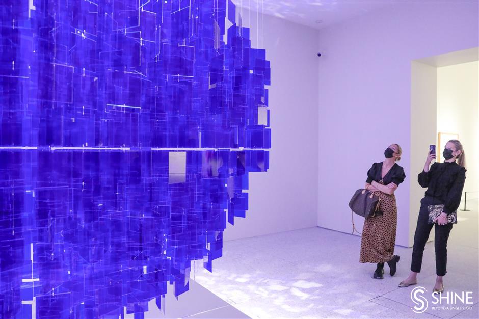 expats visit "the dynamic eye: op and kinetic art from the tate collection" exhibition at the museum of art pudong.