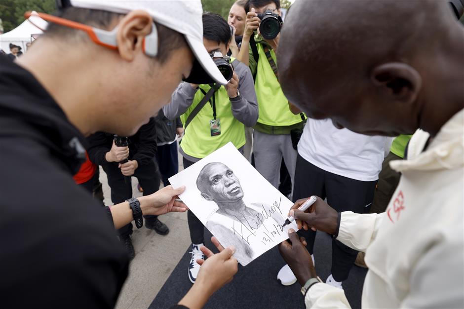 "great runners like kipchoge have set good models for us," local runner gu jini told shanghai daily. "long-distance running requires great enthusiasm and self-discipline. professional runners have to conquer pain and injury too."