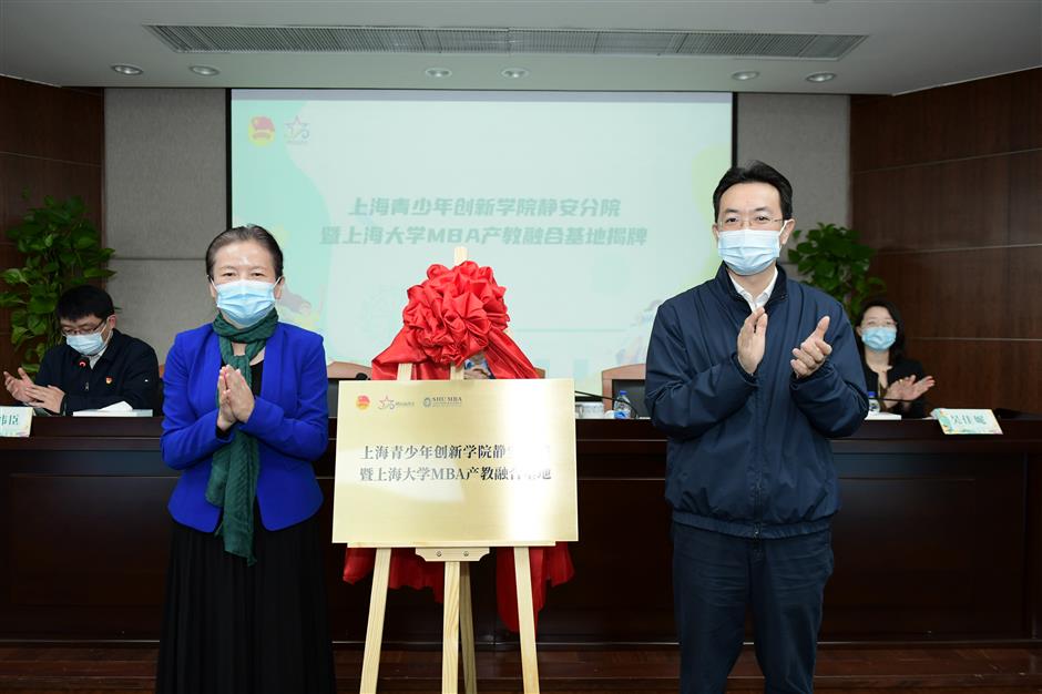 the jing'an branch of the shanghai youth innovation institute and an mba base integrating industry and the education of shanghai university were unveiled in the district on thursday.