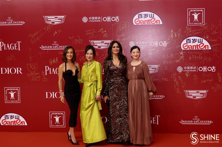 from left, maggie q, vivian wu, maria grazia cucinotta and mei ting walk the red carpet of the awards ceremony on saturday.