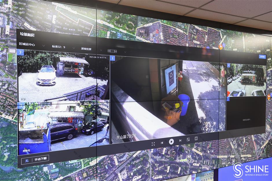on tianshan road in changning district, artificial intelligence and big data algorithm technologies monitor trash disposal irregularities in real-time and automatically alert property management staff and authorities.