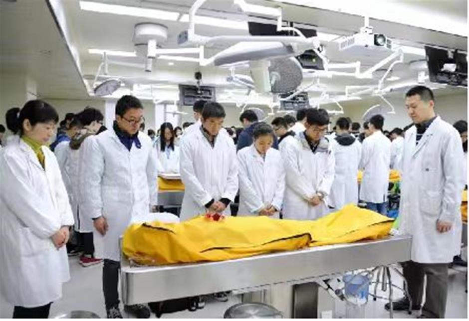whereas most chinese paid tribute to their ancestors and deceased family or friends on thursday, for qingming festival, students from the shanghai medical college fudan university expressed their honor and respect for body donors, the silent teachers in their medical study.