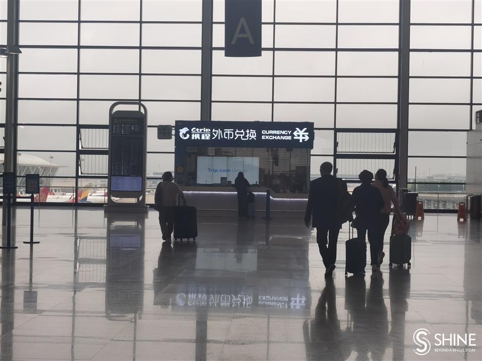 a: travelers transiting through shanghai pudong international airport with layovers over eight hours.