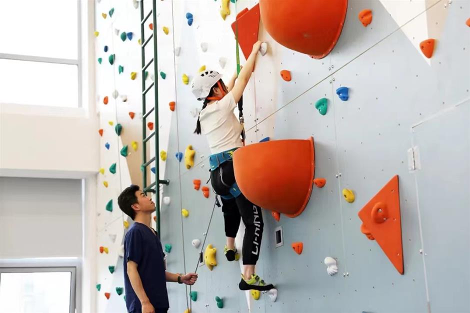 a specially-designed therapeutic climbing wall is used for various physical and psychological diseases and patients' muscle and posture training. children with focus disorder also can benefit from the exercise.