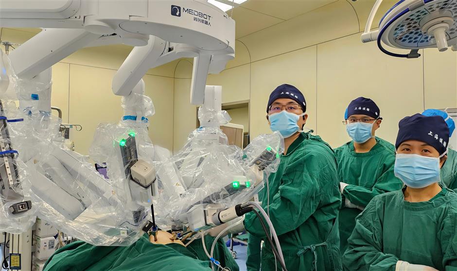 on saturday, doctors from shanghai chest hospital operated the system in shanghai, while the robotic system in kashgar of xinjiang autonomous region completed the surgery on the patient 5,000 kilometers away.