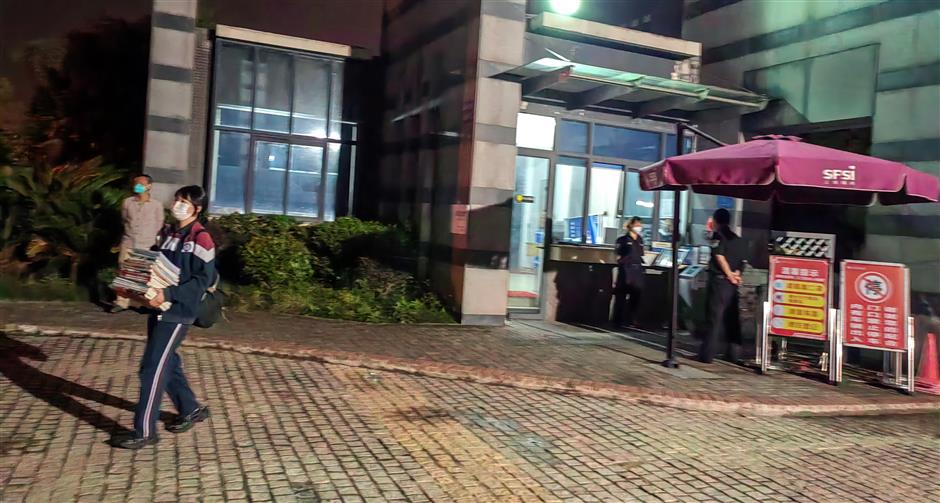 students leave the campus of the high school attached to shanghai normal university at 9:30pm on june 29. with the school closing in a few days, some students are already taking their study materials home.