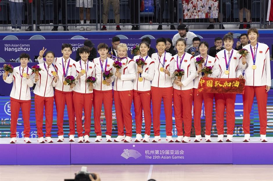 the chinese women's basketball team, after winning their seventh asian title last night.