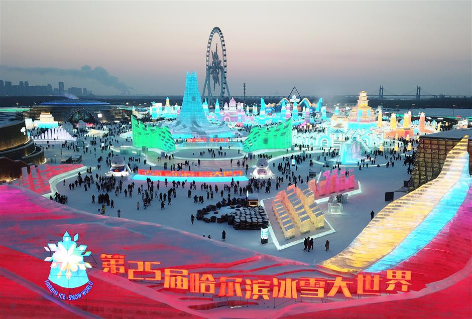 tourists have fun at harbin ice-snow world in harbin, northeast china's heilongjiang province. many regions in china, inspired by heilongjiang's tourism boom, have followed suit, taking a series of measures to improve their dining, accommodation, travel, shopping and entertainment services.